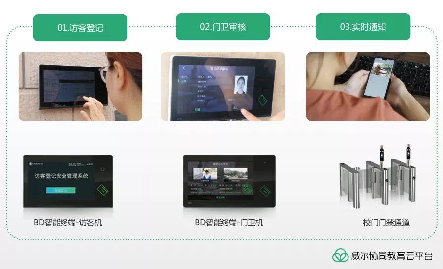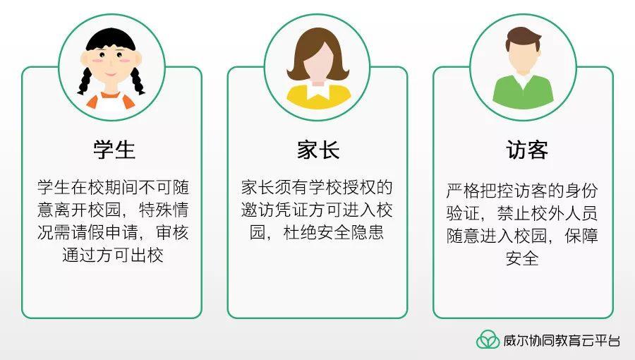 威爾首創(chuàng)家長邀請,支持身份證二維碼、邀請碼、人臉等多種識別方式入校,訪客登記更快捷,門衛(wèi)審核更高效;訪客到校實(shí)時通知,老師處理方便及時。