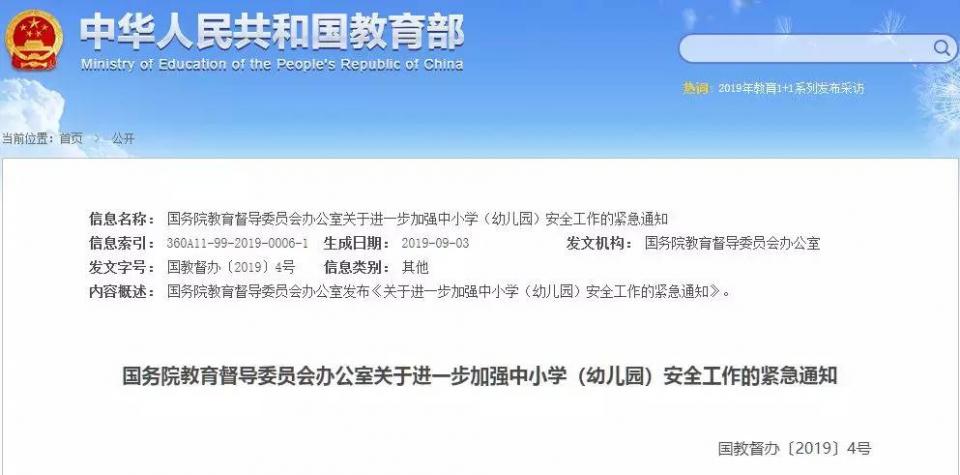 為切實(shí)做好中小學(xué)、幼兒園校園安全工作,確保廣大學(xué)生、幼兒生命安全,國務(wù)院教育督導(dǎo)委員會辦公室緊急發(fā)布通知,要求各地教育部門、學(xué)校聯(lián)合公安、綜治等部門共同行動,教育部、公安部也聯(lián)合召開全國學(xué)校安全工作緊急電視電話會議,對中小學(xué)、幼兒園安全工作再次做出明確部署,校園安全刻不容緩。
