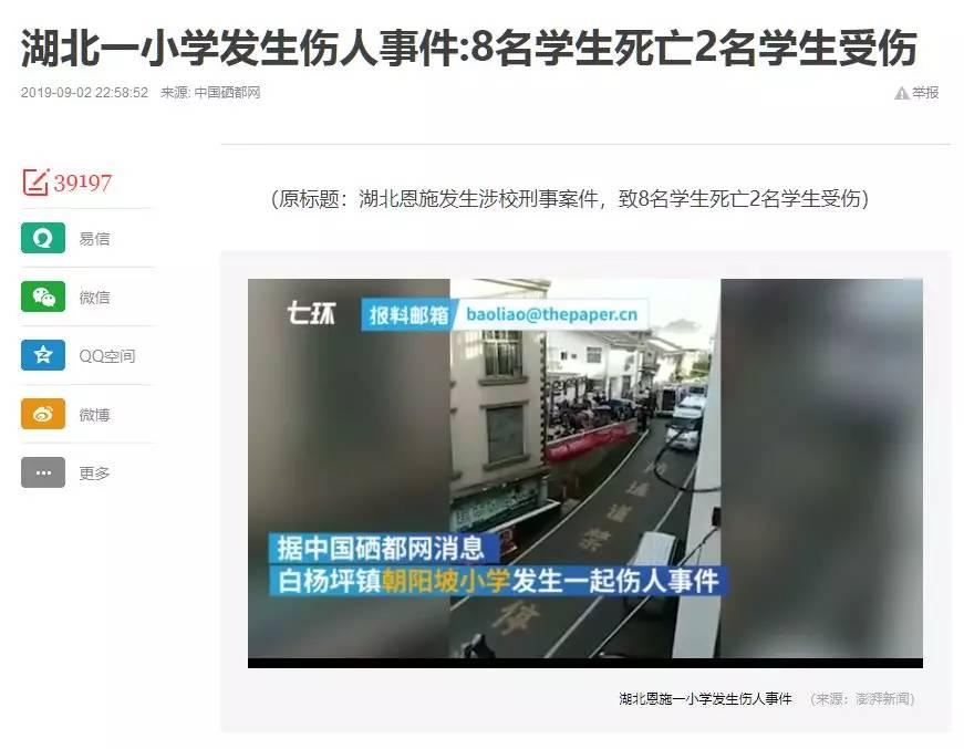 2019年9月2日,湖北省恩施市發(fā)生一起嚴(yán)重傷害學(xué)生事件,造成多名學(xué)生傷亡,引發(fā)社會各界痛惜。